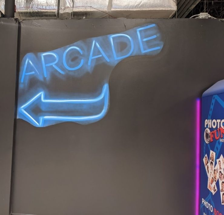Flow has you covered. Outside the trampoline area is a lounge for people to watch TV on a big screen, a mini-turf with games like corn hole and connect four, and an arcade/game room. The floor area would be perfect to entertain young children who aren’t comfortable with trampolines or simply aren’t big enough yet. We saw a few babies and parents in this area during our visit, while the older siblings took off to the big stuff.