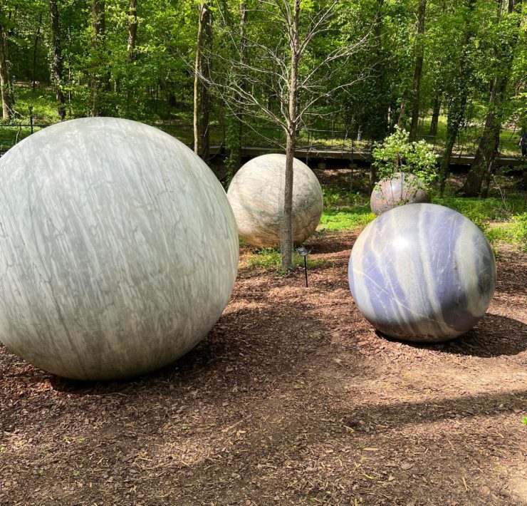 We especially enjoyed the Ann & Monroe Carell Jr. Family Sculpture Trail at Cheekwood Estate and Gardens. The trail winds through the woods on either a gravel path or wooden boardwalk, and has the feel of an easy hike with different art sculptures to enjoy along the way. The glass bridge halfway through was incredible to see.