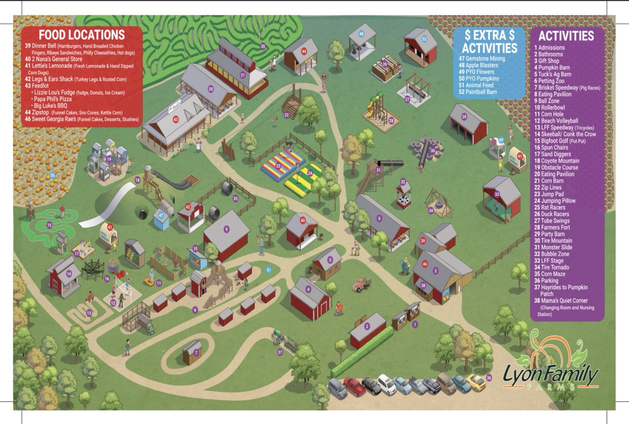 Even after hours of play, many visitors still aren’t ready to stop for lunch. Luckily, Lyon Family Farms makes it easy to refuel. The Dinner Bell snack bar serves farm favorites like burgers, hot dogs, BBQ, roasted corn, fries, and pizza, plus a full lineup of fall sweets including funnel cakes, homemade donuts, fried Oreos, caramel apples, ice cream, and pie.