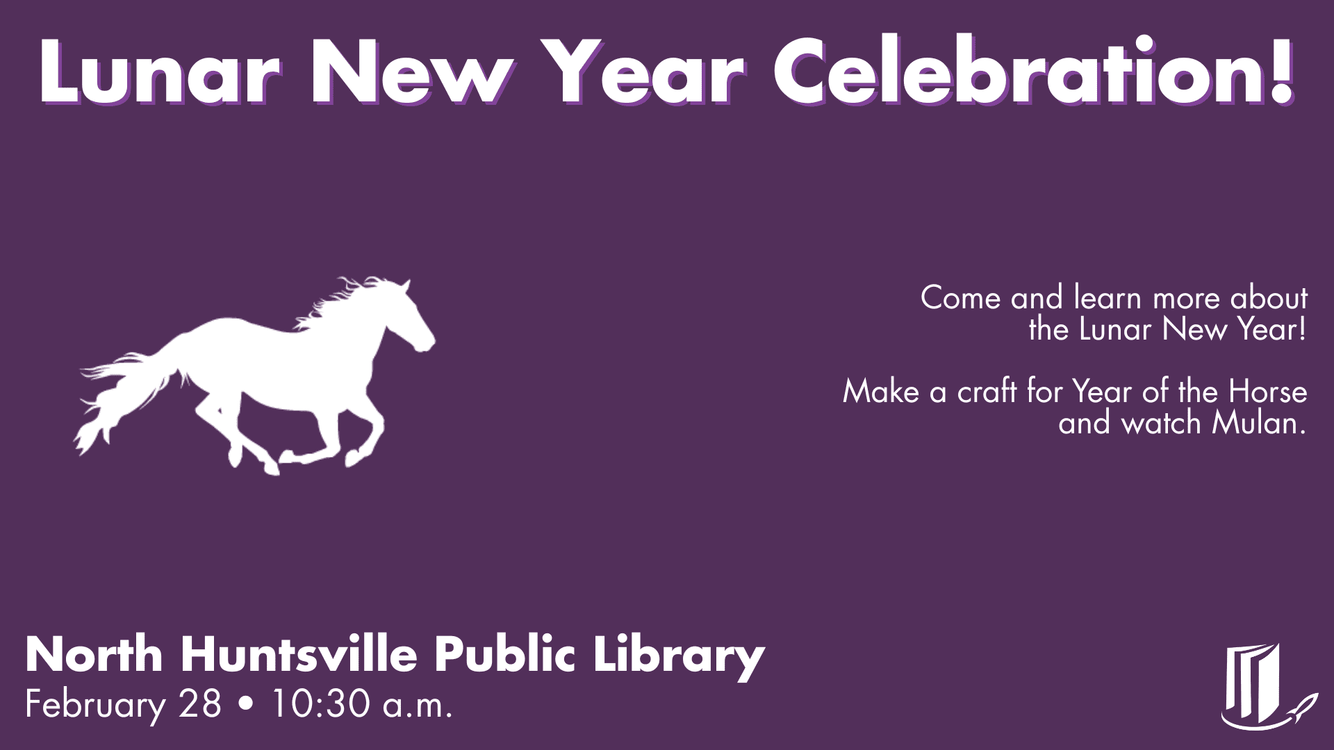 Learn more about the Lunar New Year, make a craft for year of the horse and watch Mulan.
