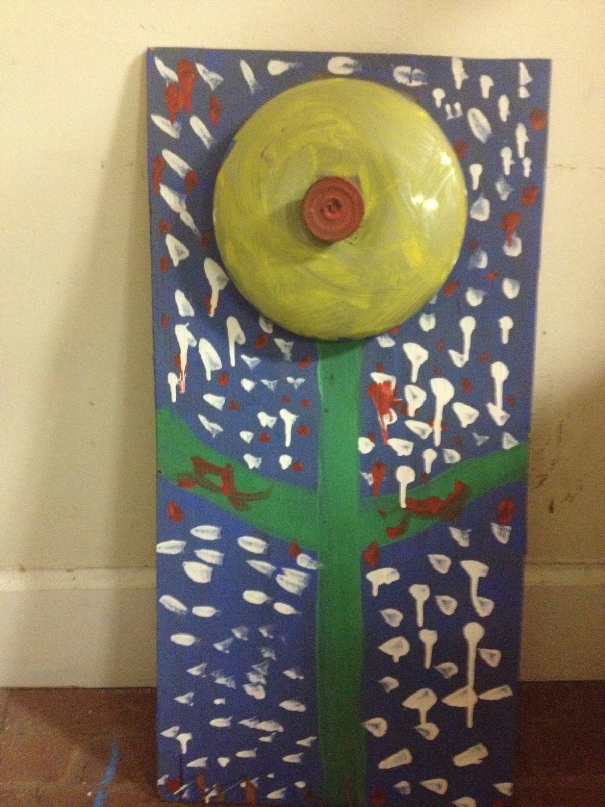 She made this little flower craft this past summer at cousin camp with my parents. It was sitting right by the door to the garage because I haven’t quite figured out what to do with it. Yea for procrastination! It saved the day! She scooped it up happily and the world continued turning, the universe back in proper order with this crisis narrowly averted.