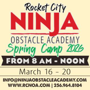 Let your kids tackle the ultimate “American Ninja Warrior Experience” this year at Rocket City Ninja’s Spring Break Camp! This week-long camp is a high-energy experience where kids run real obstacle courses to build confidence, strength, and agility while burning plenty of energy with new friends. It is the perfect way to keep them active and engaged every single morning of their break!