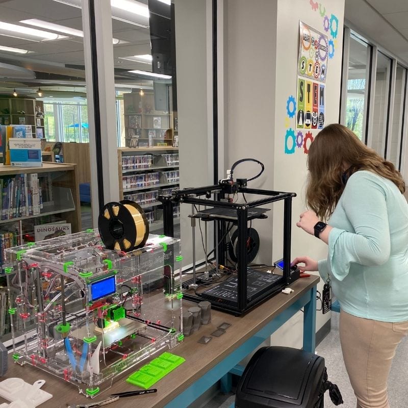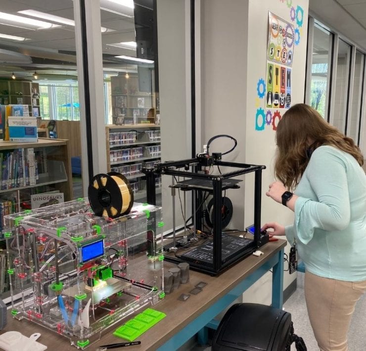 Teens and tweens have their own space here too, adjacent to but away from the Kid’s Area. A Young Adult game/study room is a welcome addition and the Makerspace Lab is a huge draw! Teens and adults alike can make a reservation to learn how to use the 3D Printer, Cricut & sewing machines, and audio/video recording studio. Just imagine how many TikToks you can make…
