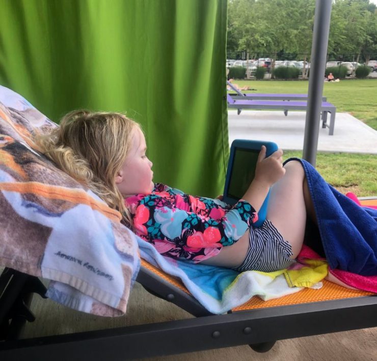 This is also where the cabanas are located and my toddler had an awesome time in ours with her tablet playing a favorite Disney movie, which gave her some time out of the sun! The older kids ran off to the slides that are close by while we enjoyed the shade and got some much needed rest.
