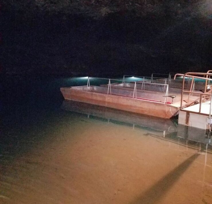 Tour groups are led by entertaining and knowledgeable guides, who discuss the cave’s history, rock formations and various cavern rooms. During the tour, you get to experience total darkness for about a minute when they turn off the lights. At the halfway point in the tour, you’ll arrive at America’s largest underground lake, both beautiful and serene. You’ll walk to the boat dock and board one of the awaiting boats. After a few minutes in the boat, they hand out fish food (beef liver pellets) to feed large rainbow trout. This was unanimously voted as our favorite part of our trip! The guide discusses how and when the fish were brought into the cave, and the purpose for bringing them there.It’s a great story, so instead of spoilers, go experience it for yourself!