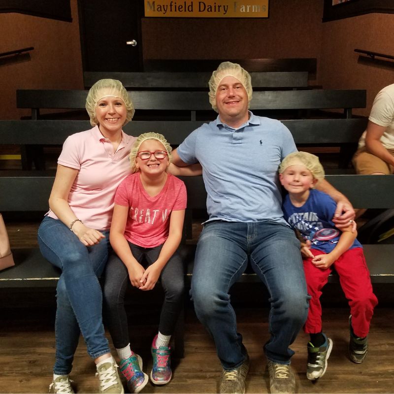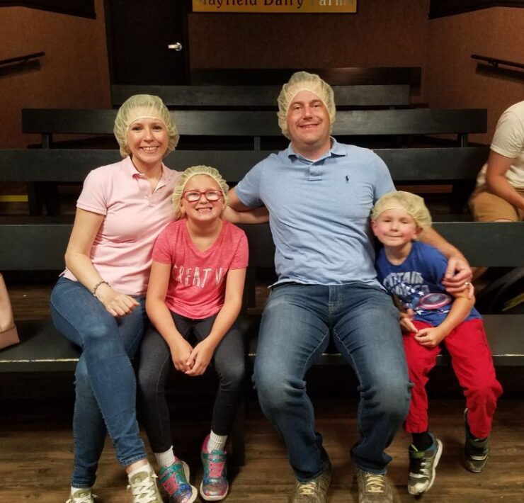 Our family made the approximately 2 ½ hour drive from the Huntsville area to our first stop on our Tennessee Roadtrip, Mayfield Dairy Farms in Athens, TN. We arrived around 10:30 a.m. and found ample onsite parking. Each tour starts on the hour and lasts 45 minutes. While we waited for our tour to begin, we explored Mayfield’s adorable gift shop and even practiced “milking” the life-size, pretend cow!
