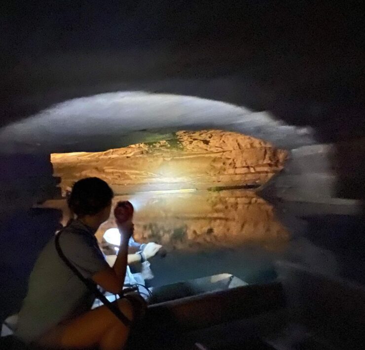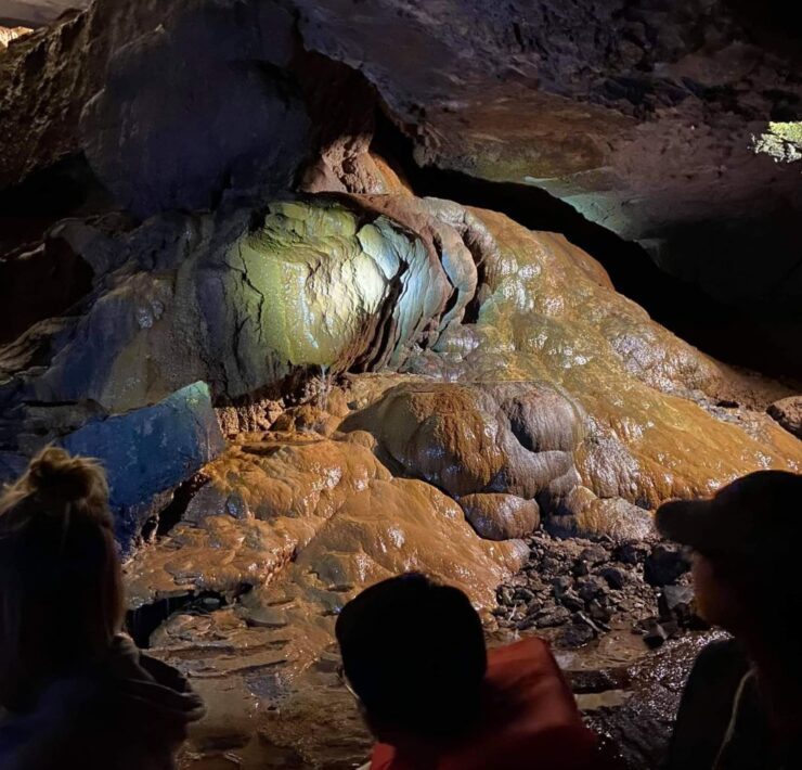 Lost River Cave is only 15 minutes away from Chaney’s Dairy Barn in Bowling Green and a great next stop. Here we went into the gift shop to purchase our tour tickets and browsed until our tour started. It is about a 0.5 mile walk from the gift shop to where the tour starts, so be sure to head that way about 10 minutes prior to your time. Once the tour began, the guide took us on a beautiful 20-minute guided walk along the rivers edge to the massive cave entrance. Here we donned life vests and walked down a steel staircase to board the small boat.