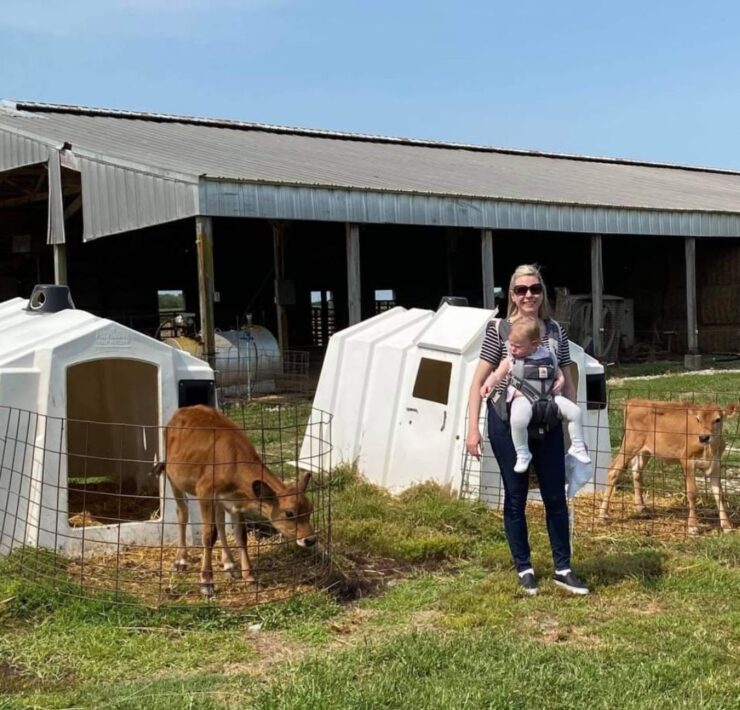 We packed the car with our luggage and three kids and began our journey around 8 a.m. We arrived at Chaney’s Dairy Barn in Bowling Green right before lunch. There we ate lunch (they serve burgers, chicken tenders, salads, and sandwiches). For dessert, we enjoyed assorted flavors of ice cream. Our favorites were Birthday Cake and Cookies & Cream, but they have a HUGE offering so sample as many as you want. After lunch, we went outside to their playground to burn off some of that sugar! The playground is right behind the restaurant and keeps with the red barn theme. It has swings, all sorts of slides, and other playground equipment. After about an hour on the playground, we made our way to the short self-guided farm tour in one of their barns. Before starting our tour, we got to say hi to a few calves that were in a pen right outside the barn (please note, petting the cows is not allowed). Once inside the barn, we saw a short video about the farm, the milking process and watched a live robot milking the cows. There is an observation window upstairs to see Chaney’s milking cows and their caretakers at work.