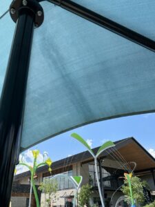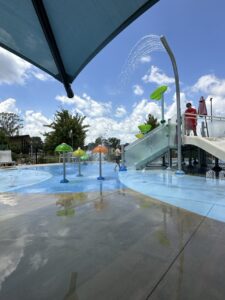 Shaded seating areas throughout, with extra appreciated shade by the splash pad (where our littles spent most of their time!)