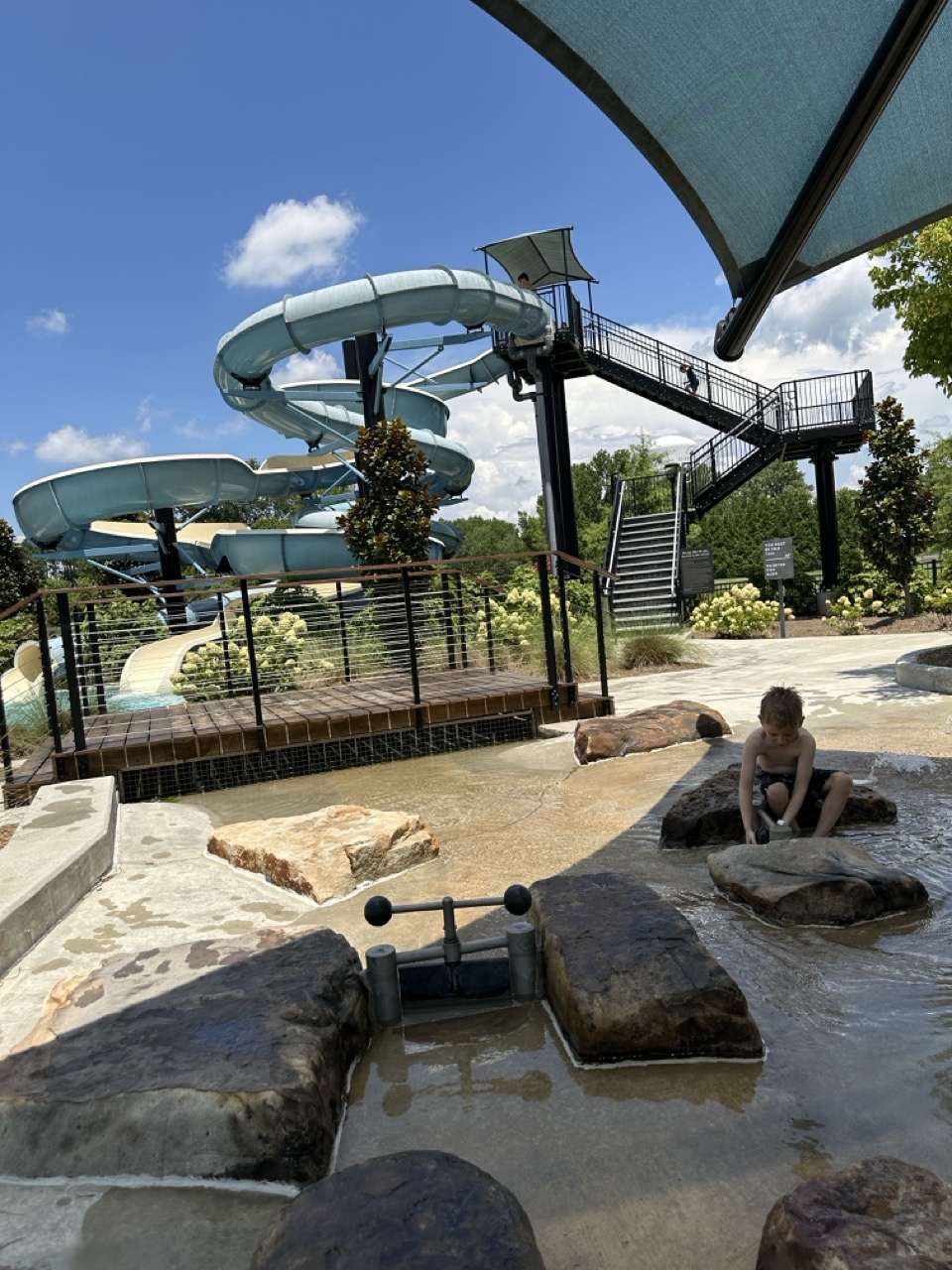 Shaded seating areas throughout, with extra appreciated shade by the splash pad (where our littles spent most of their time!)
