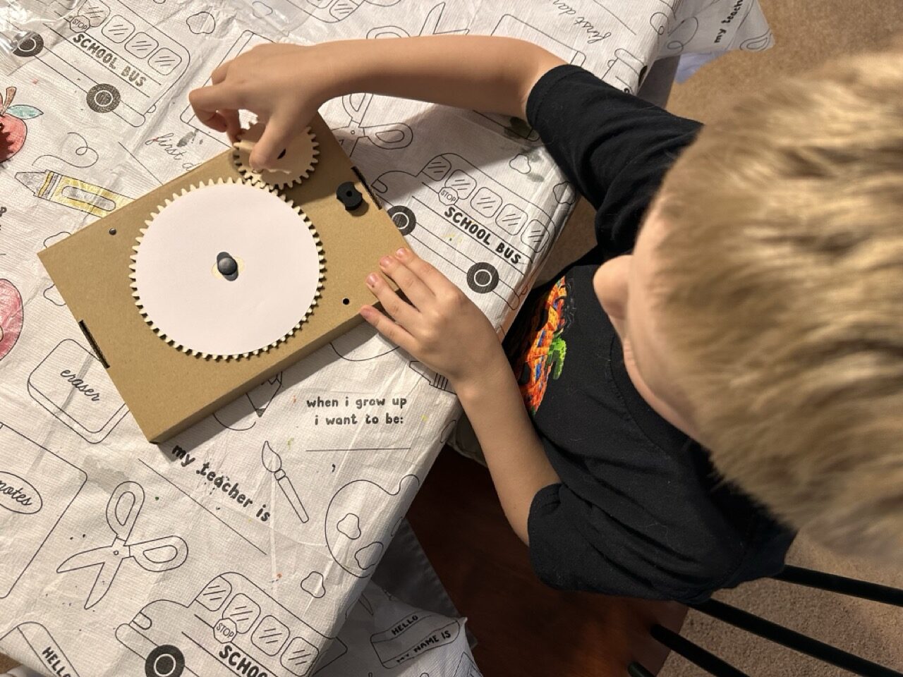 Every piece was clearly labeled, and we didn’t have to scramble for any extra supplies, a HUGE plus when you have a super-excited kiddo who is ready to work on the projects as soon as the box is delivered. There was also a sheet of fun stickers that related to the activity theme. Our kiddo used some of them to decorate the cycloid drawing machine when he finished it. (and he even let us keep a couple of them so we could be as “math cool” as he is. Never thought we would be called “math cool” but it sounded like a compliment, so guess that’s a win all around.)