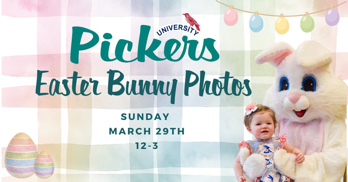 Looking for the perfect spring memory? Bring the kids (and your cameras!) to University Pickers for a fun afternoon with everyone’s favorite bunny.
