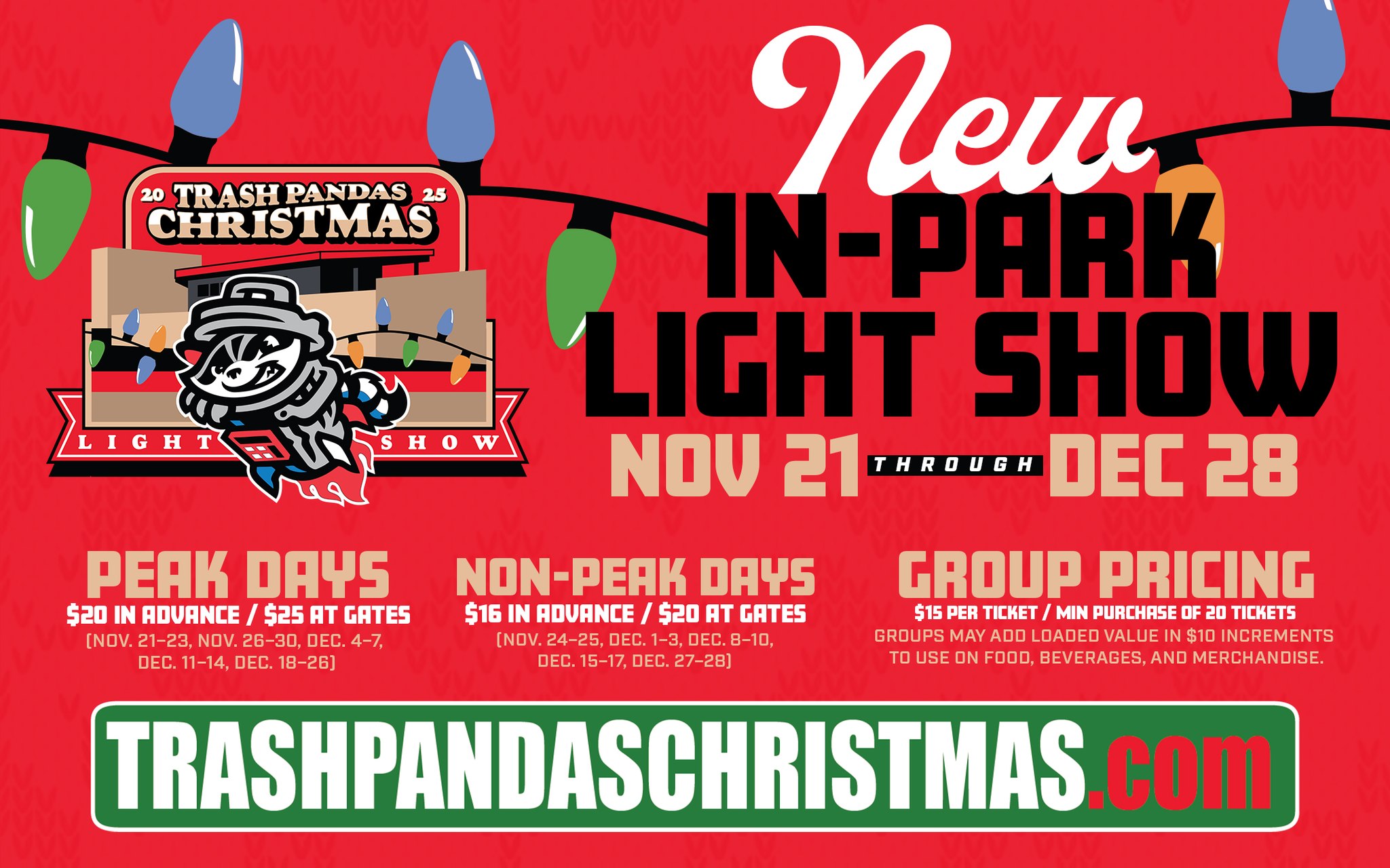 The NEW Trash Pandas Christmas Light show is bigger and better than ever before! Toyota Field will transform into a winter wonderland of festive lights.