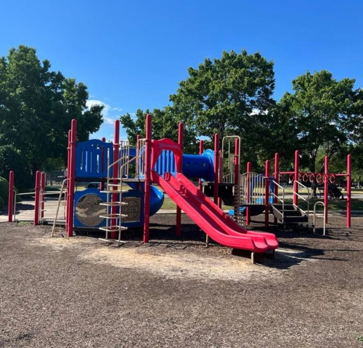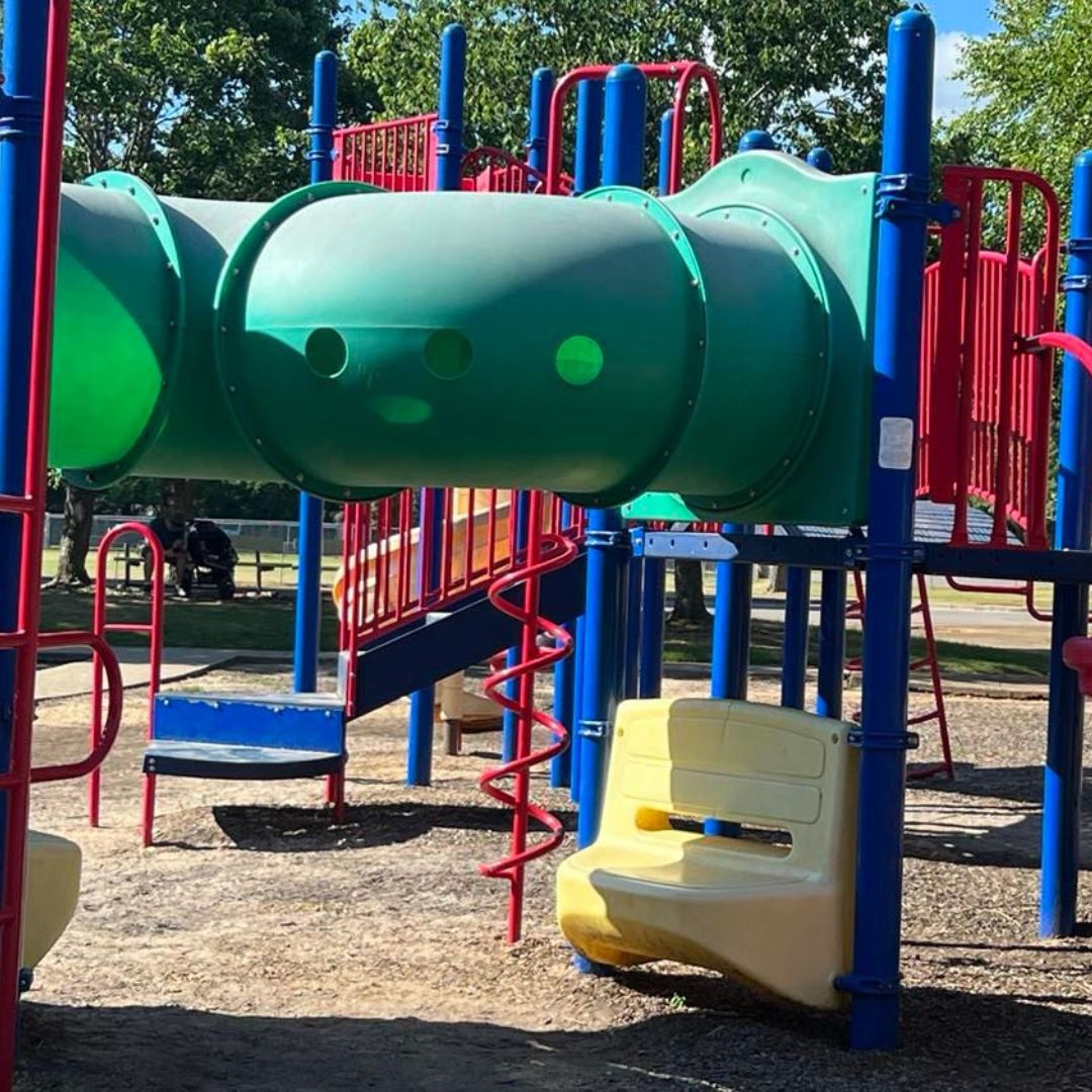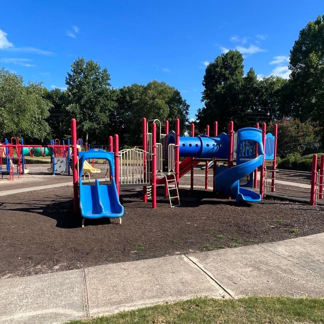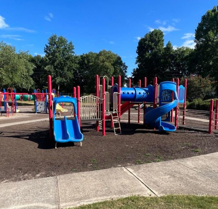- The playground is encircled by sidewalk and has easy access to Aldridge Creek Greenway, so be sure to bring the riding toys and bikes to stretch out the visit. (You can even ride bikes down the Greenway to Southside Park for an all-day adventure.)