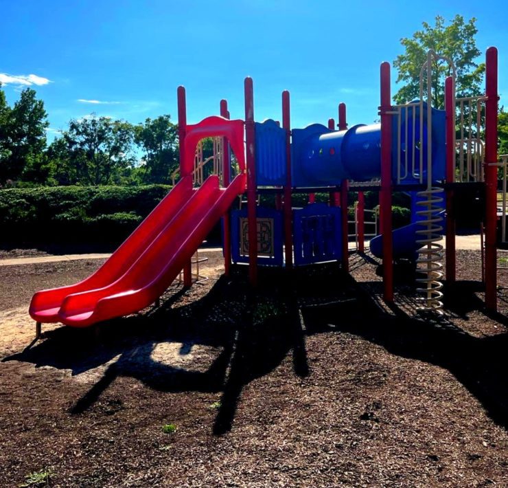 - Although there is shade on the benches for caregivers, the playground equipment is mainly in the sun. Be sure to bring the sunscreen and check equipment temperatures before letting the little ones loose.